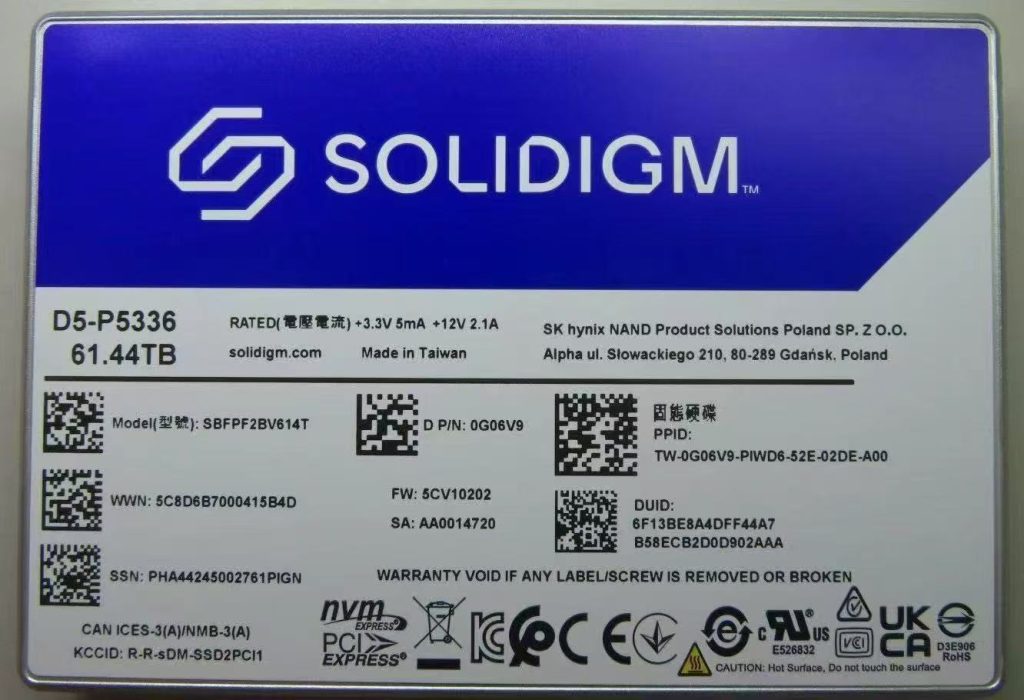 Solidigm P5336 61.44TB企业级固态硬盘的详细参数和技术规格: